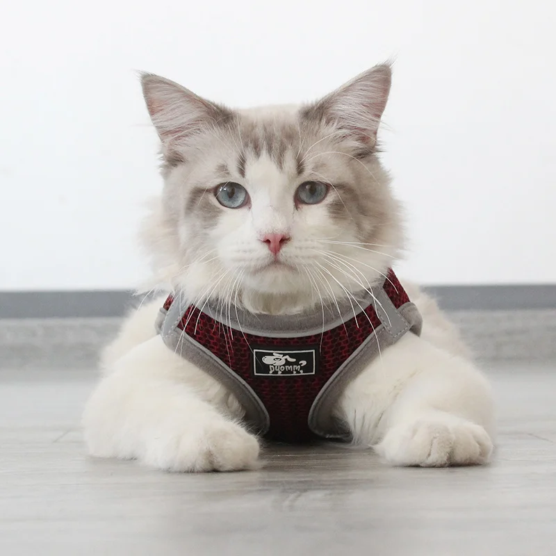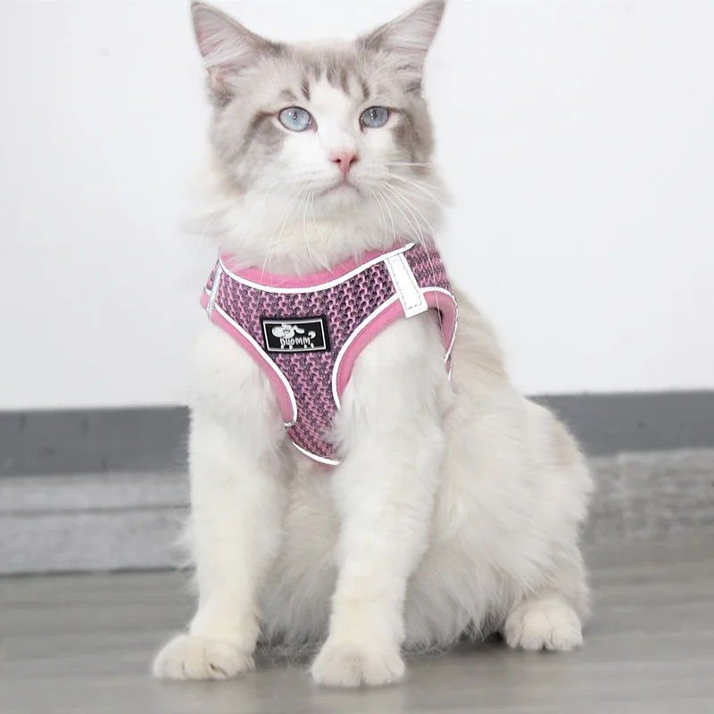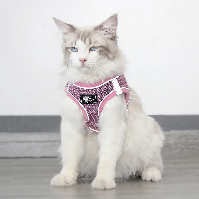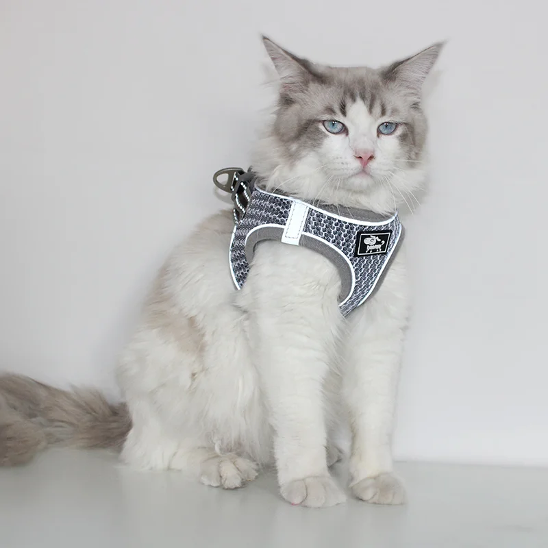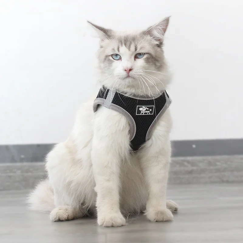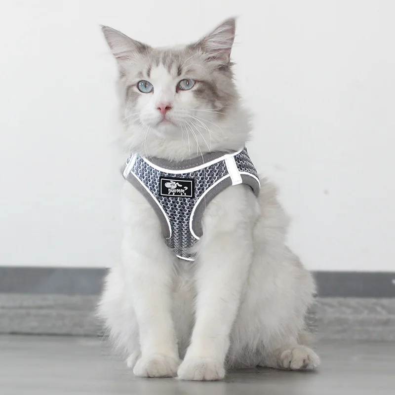 We love this harness! Our kitten, not so much. We are working on training her to go on walks outside. It took her a while to get her balance to be able to jump with it on. It’s interesting that our feisty kitty gets very docile when she is wearing her vest. We are hoping she will get used to walking with it soon so we can take her outside. It’s a great harness. Sturdy and still soft. I highly recommend it.
